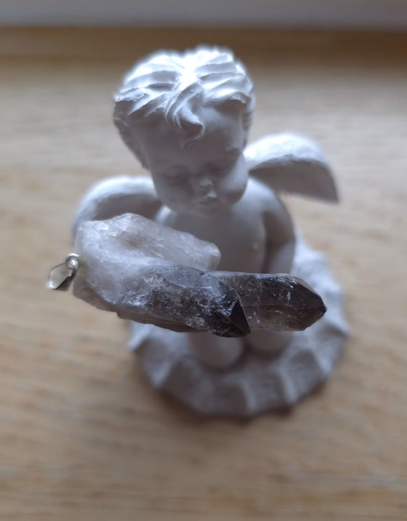 Hänge Rå Rökkvarts Med Dubbelspets och Kluster Nr 1