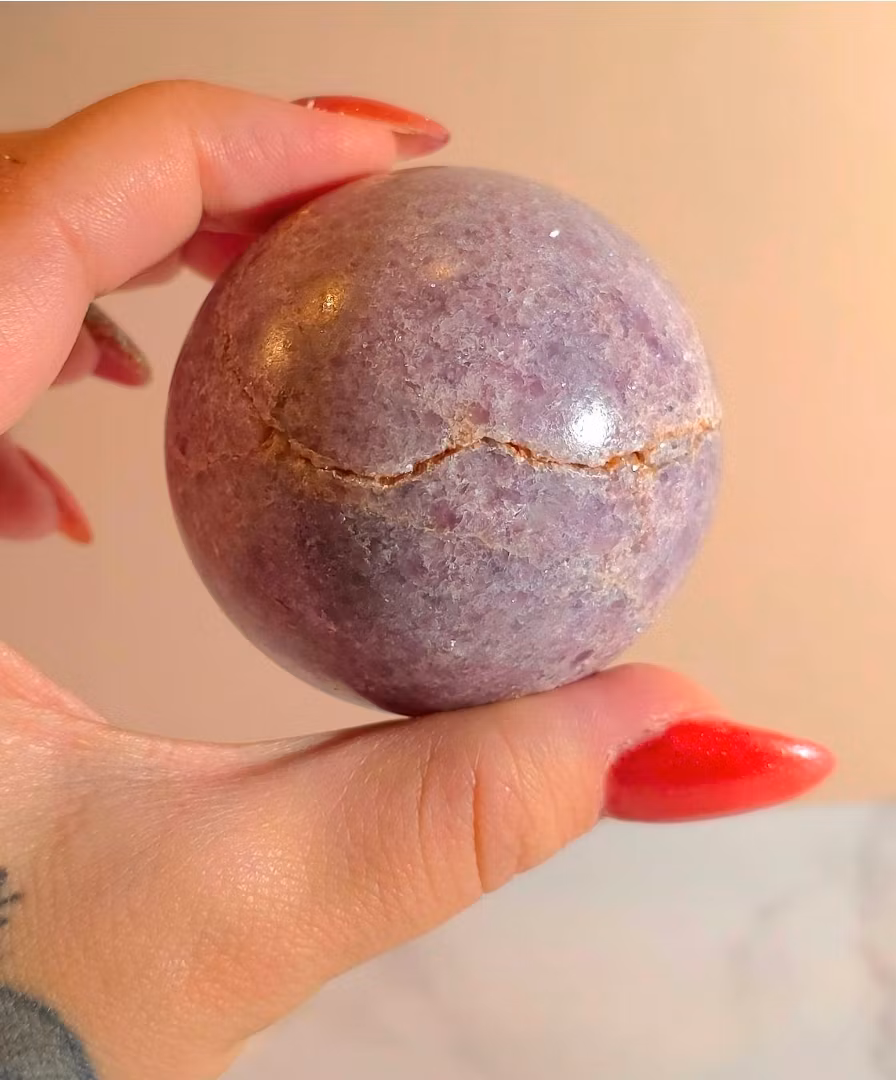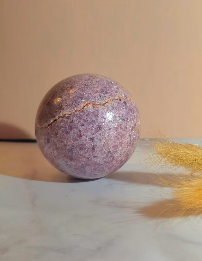 Lepidolit klot / sfär med naturliga sprickor och fint glitter.