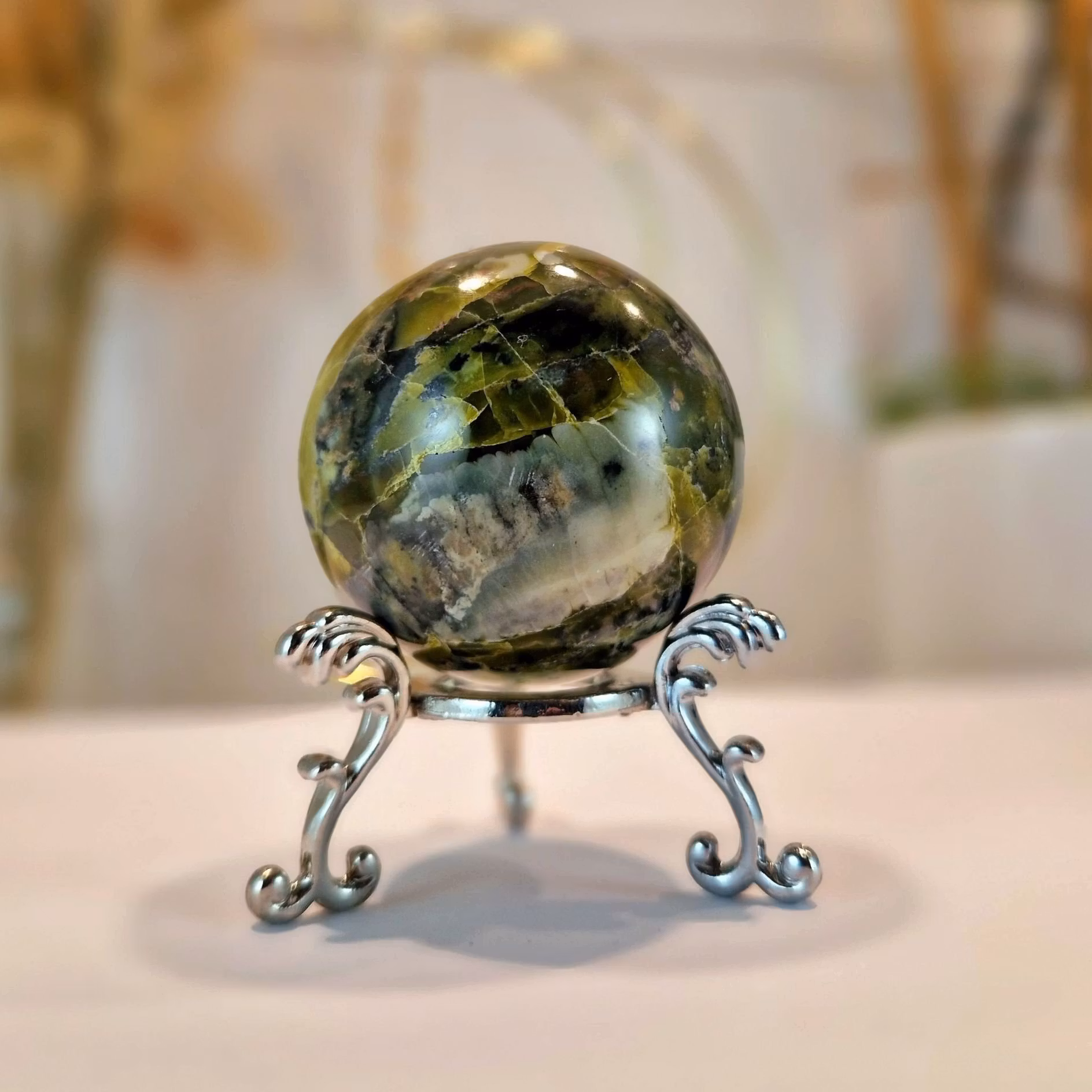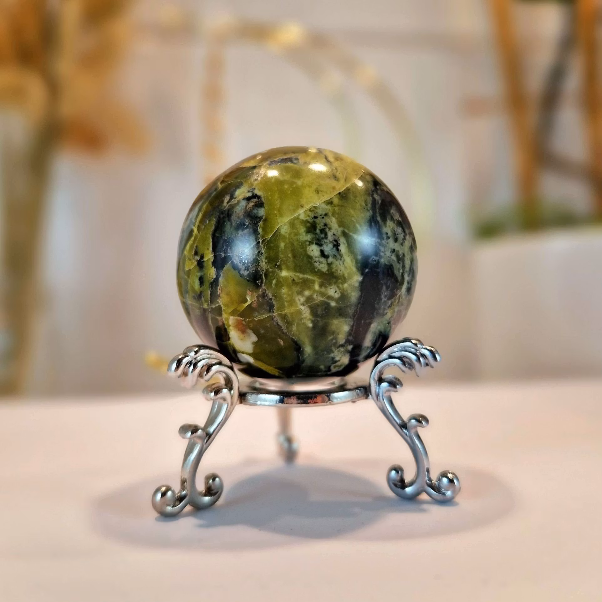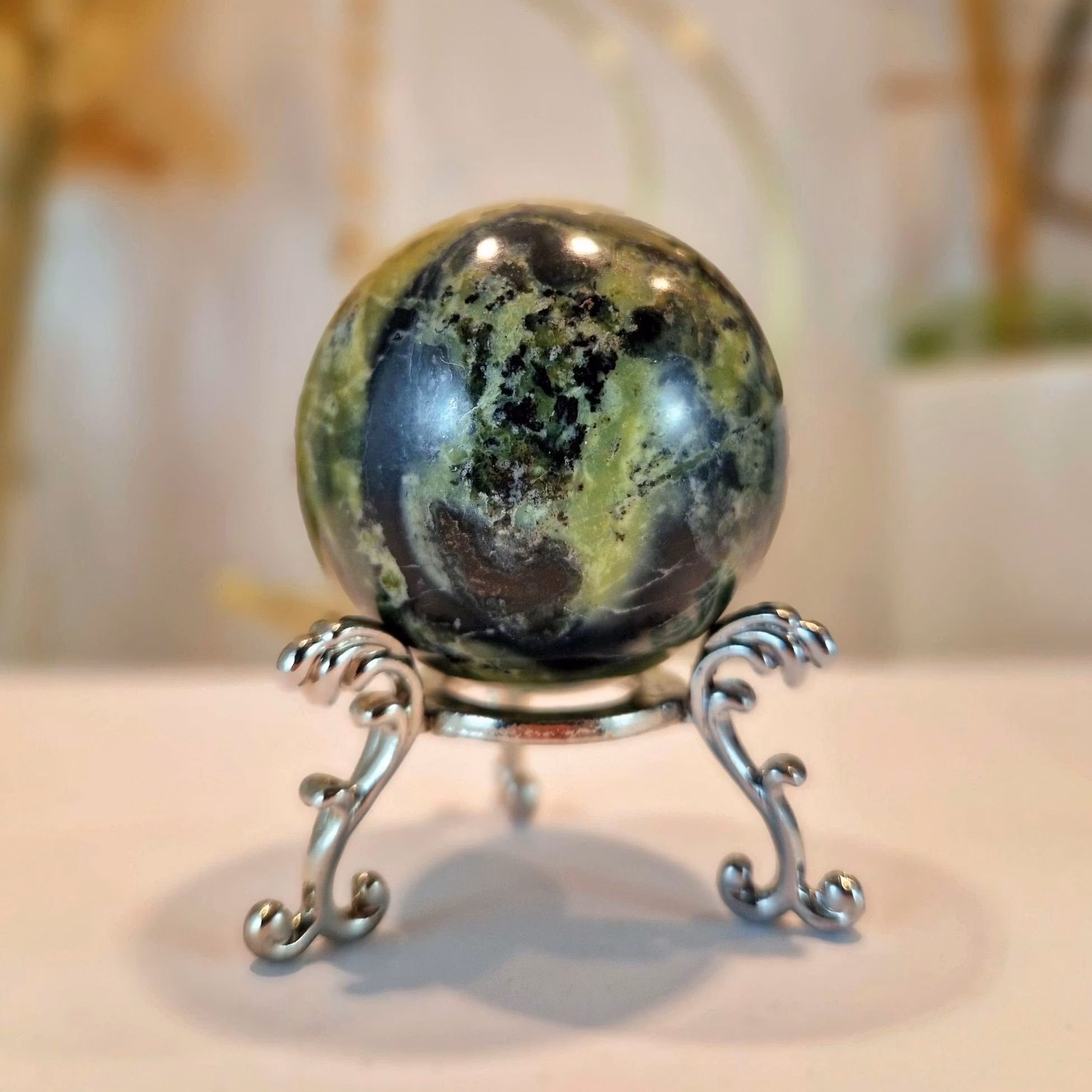 Klot Grön Serpentin 175 gram 449 kr I lager. Lägg i korgen Produktbeskrivning Ett fint grönt klot av Serpentin Vikt: 175 gramUrsprung: Peru