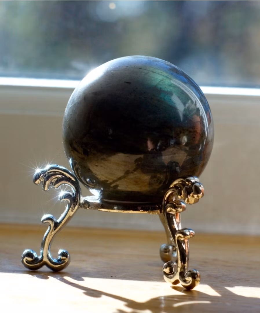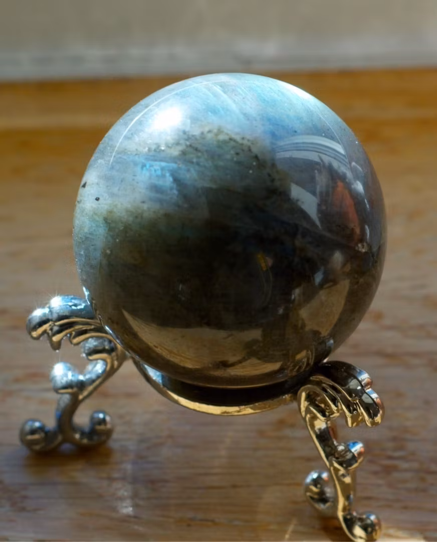 Labradorit är känd som ”den magiska stenen” och sägs förstärka intuition, skydda energier och öppna upp för kreativitet och andlig insikt. Att hålla eller meditera med detta klot kan ge klarhet, balans och harmoni i ditt dagliga liv.