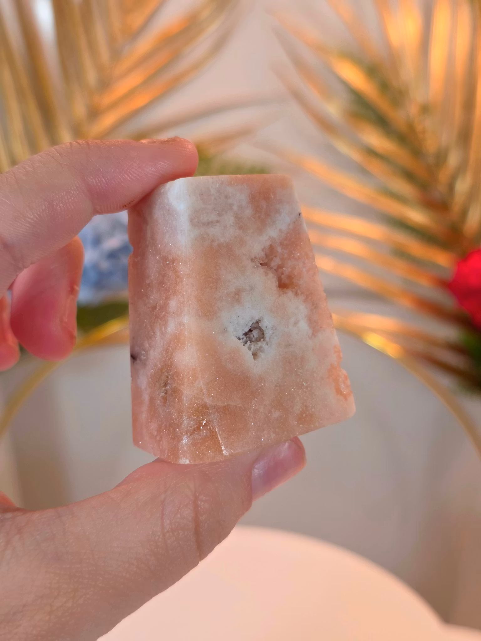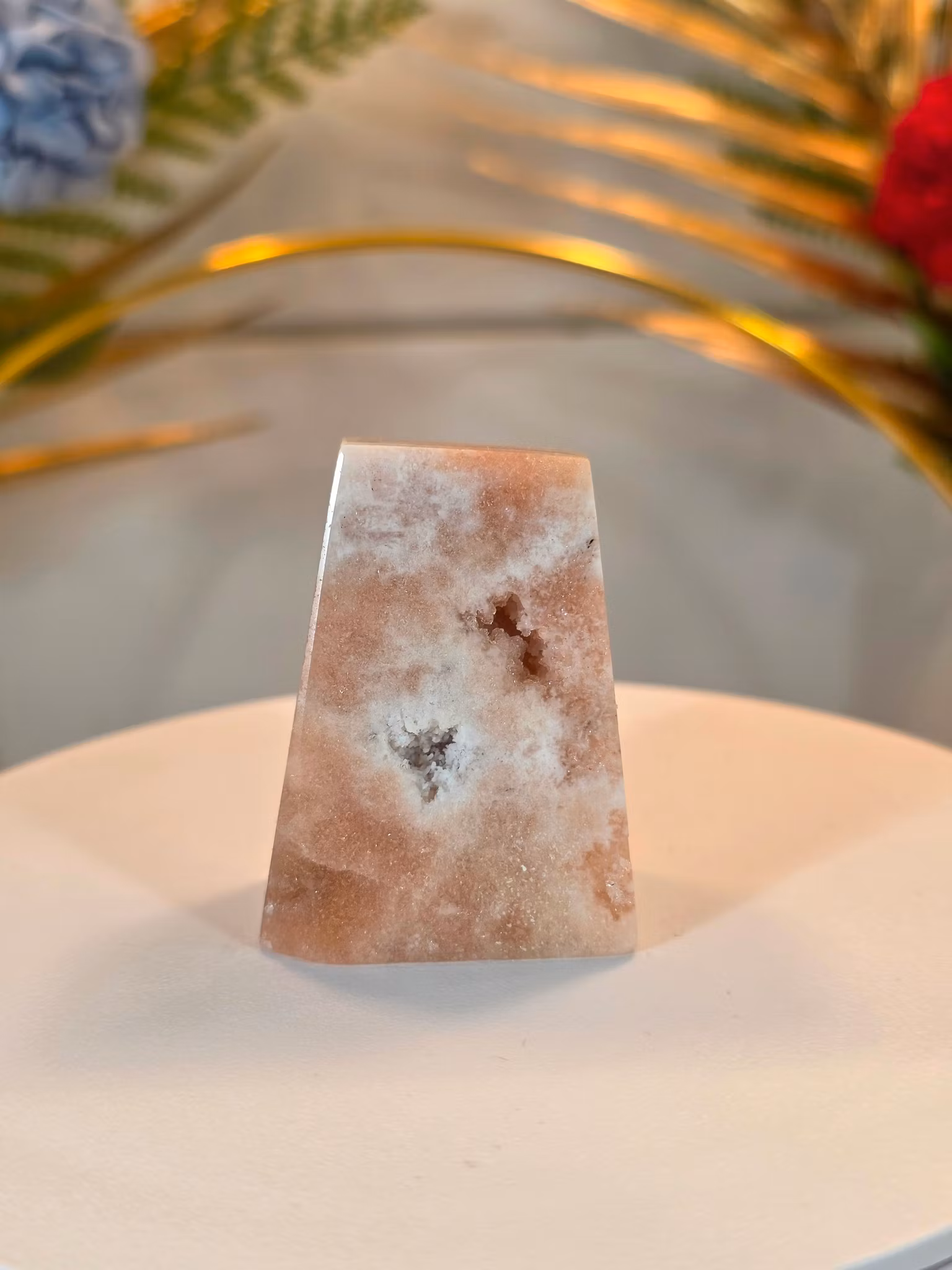 Liten polerad bit av Rosa Ametist med druzy kluster.