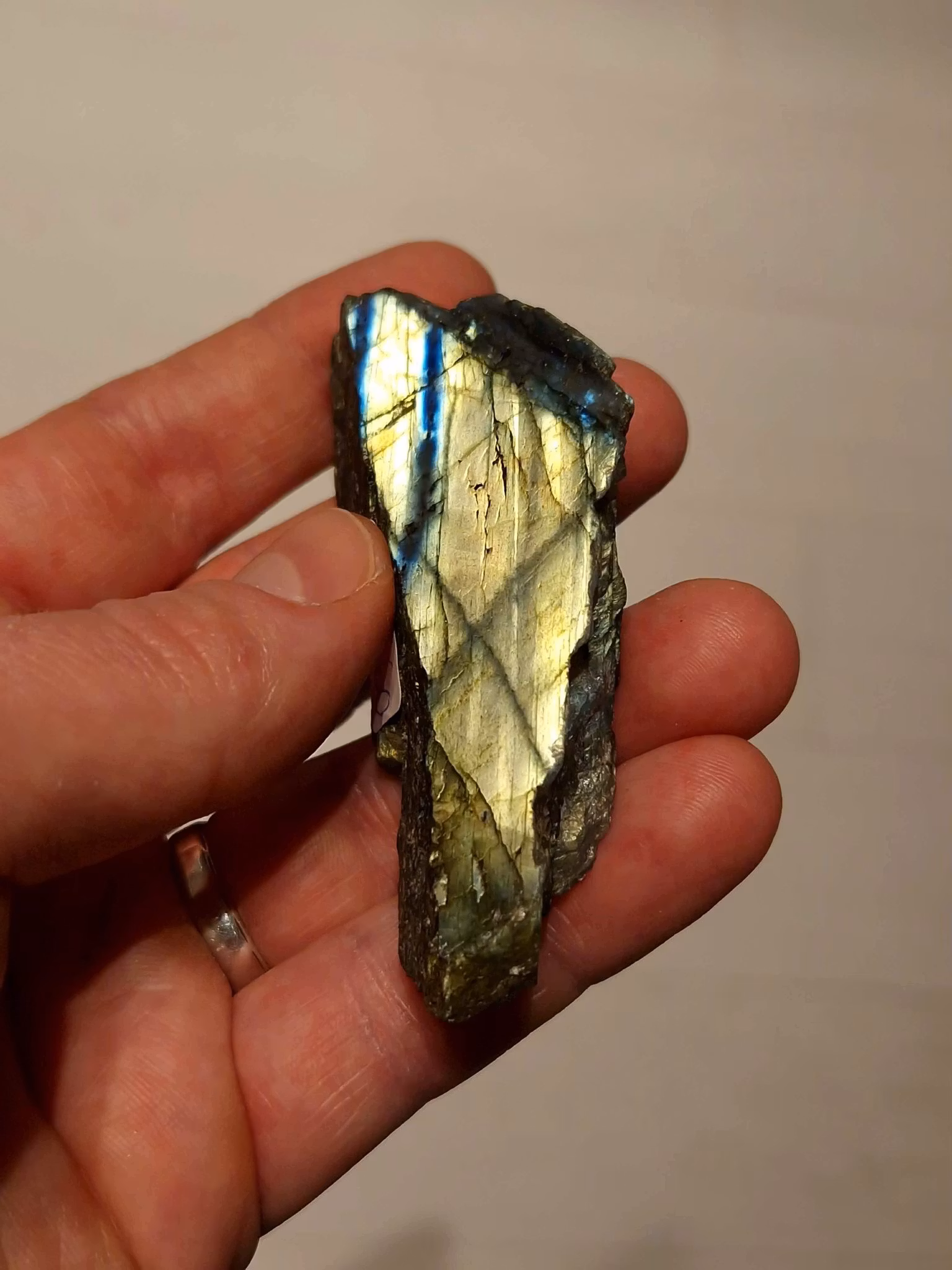 Labradorit är beroende av att vridas i rätt vinkel och ljus för att du ska kunna se effekten!