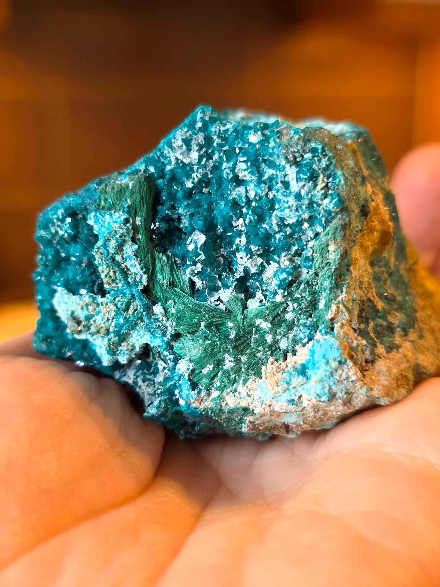 Dioptas är i sig ovanlig, men bitar som kombinerar dioptas, kvarts och malakit på samma sten är mycket sällsynta.