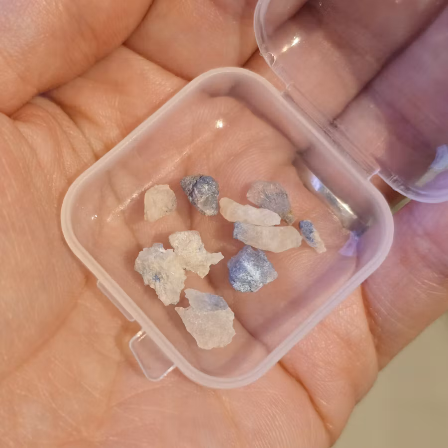 Naturliga inneslutningar, sprickor och håligheter är synliga och utgör en naturlig del av stenen. Vänligen hantera med extra försiktighet, då vissa små material kan sitta löst. Detta är mycket ömtåliga stenar.