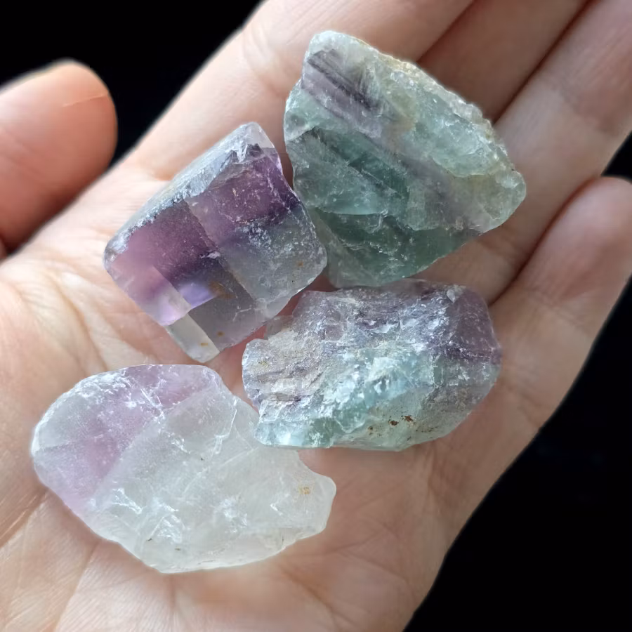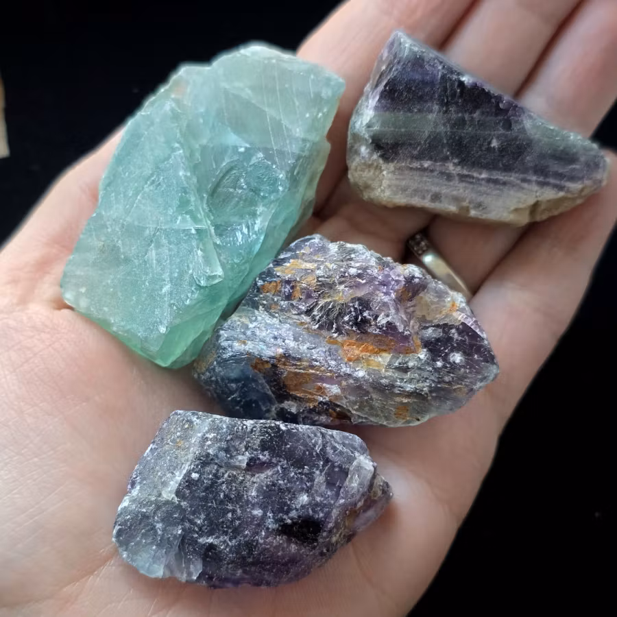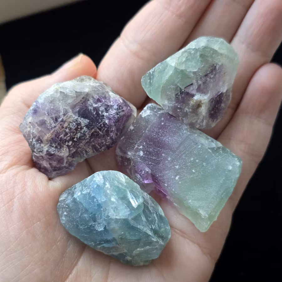 En rå regnbågsfluorit med vackra skiftningar i lila, grönt och blått. Har du önskemål om färg på din fluorit eller annat, skriv det som meddelande vid köp.