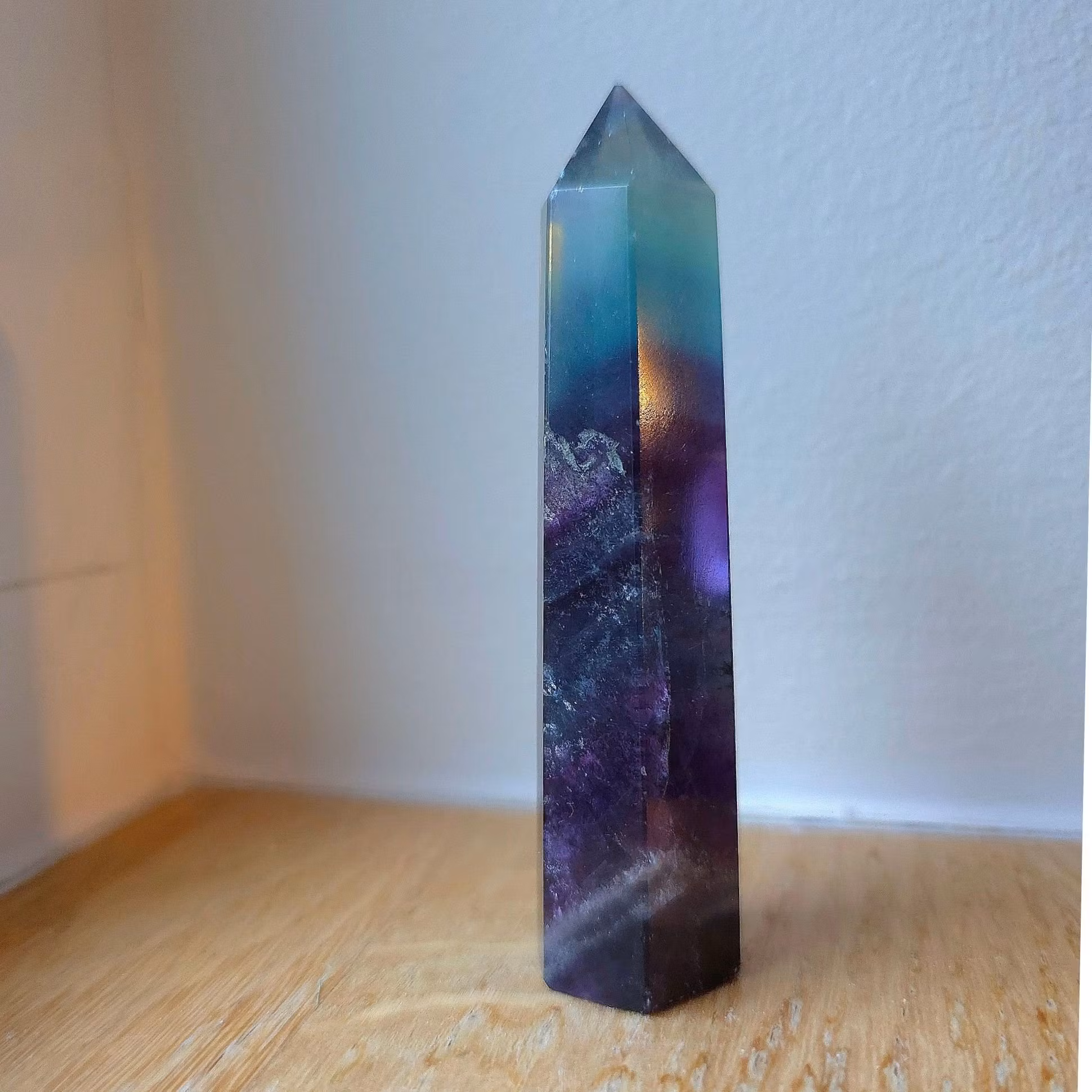 Fluorit i polerad form. Mycket reflektioner av regnbågar på framsidan!