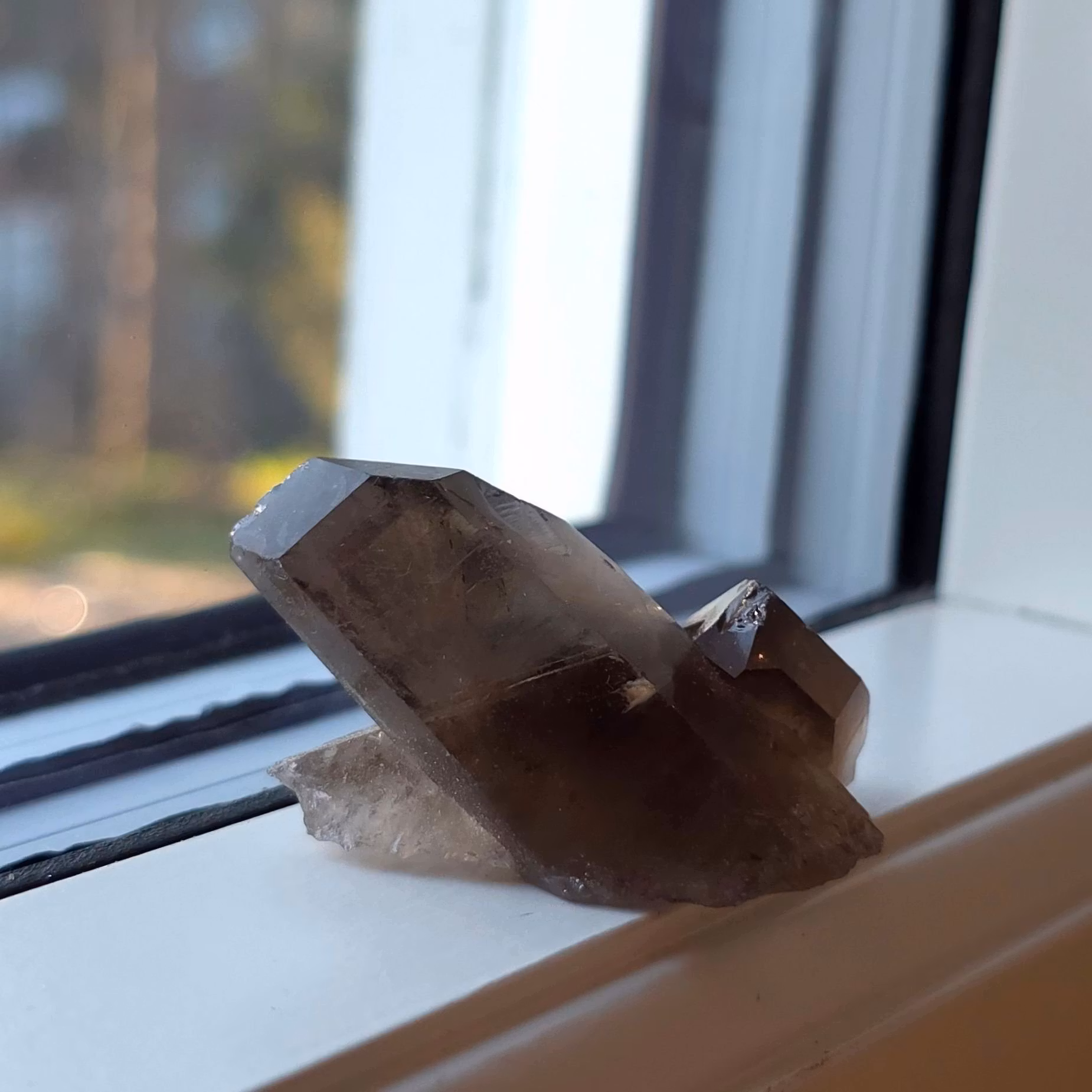 Rökkvarts Kluster 28 gram 89 kr I lager. Lägg i korgen Produktbeskrivning Rökkvartskluster. Fina mörka spetsar.Vikt: 28 grUrsprung: BrasilienDu får spetsen på bilden.