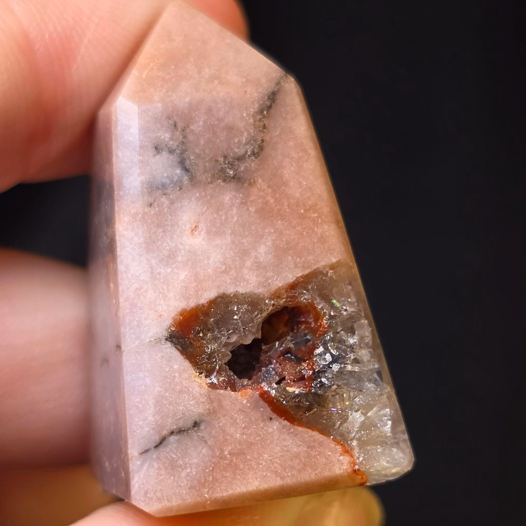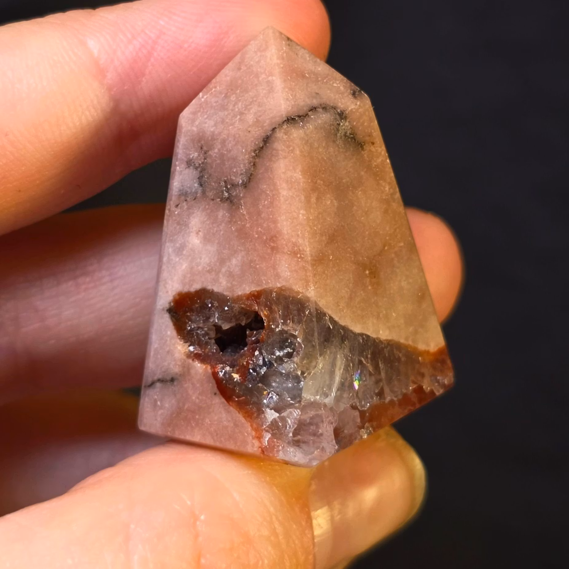 Liten spets av Rosa Ametist med druzy kluster med regnbågar.