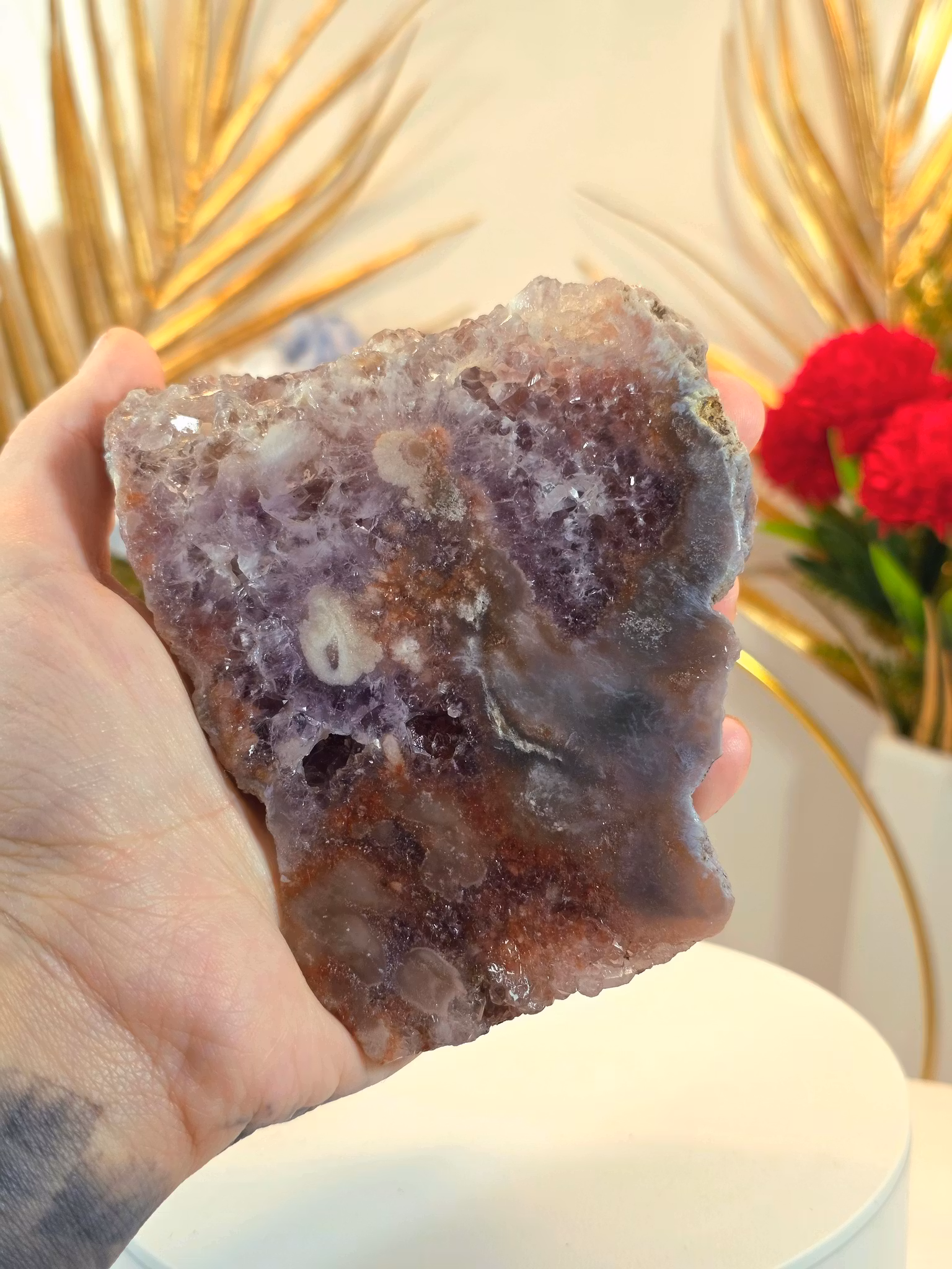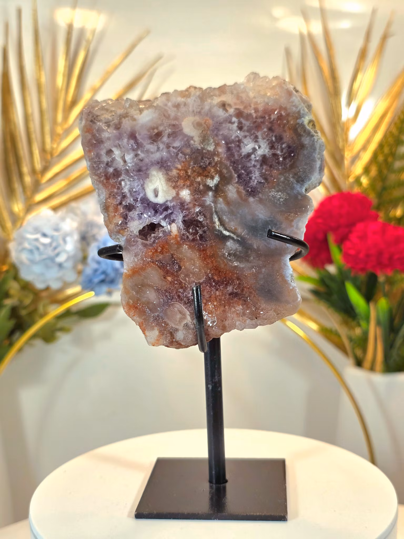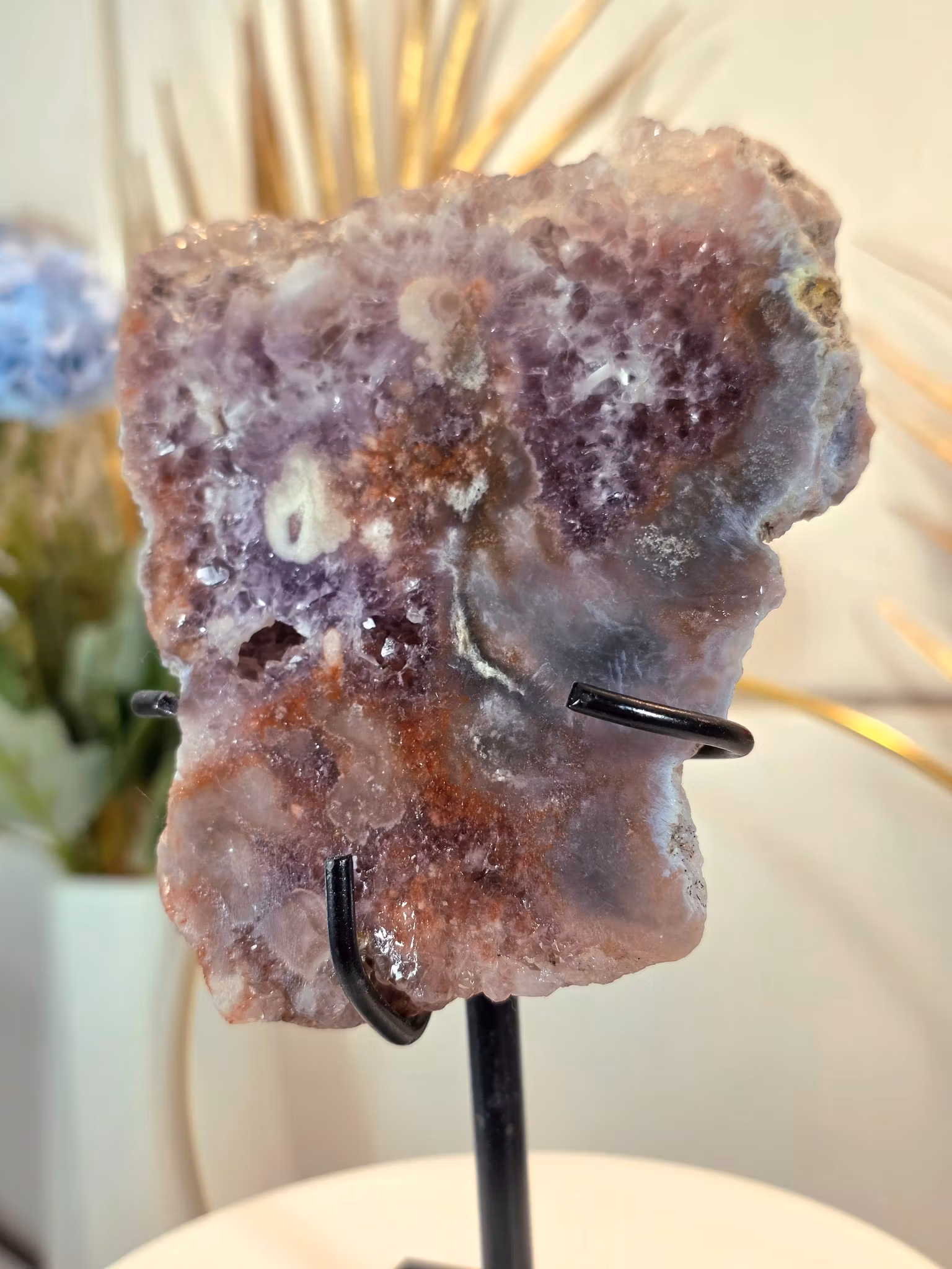 Rosa Ametist Slab På Ställning