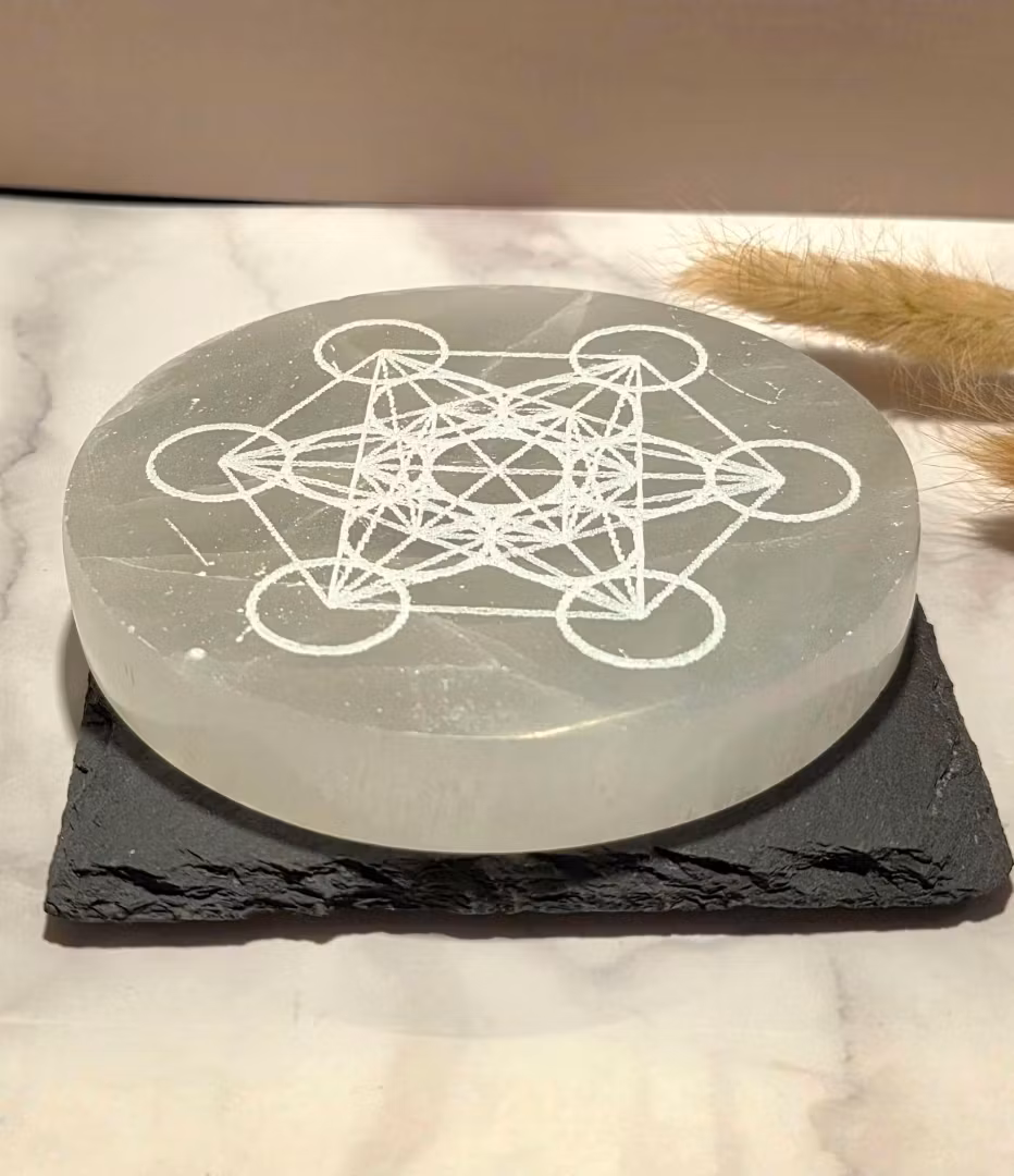 Den vackra selenitplatta är perfekt för att rena och ladda dina kristaller. Selenit är känd för sin höga vibration och sin förmåga att rensa bort stillastående energi, skapa klarhet och återställa balans.