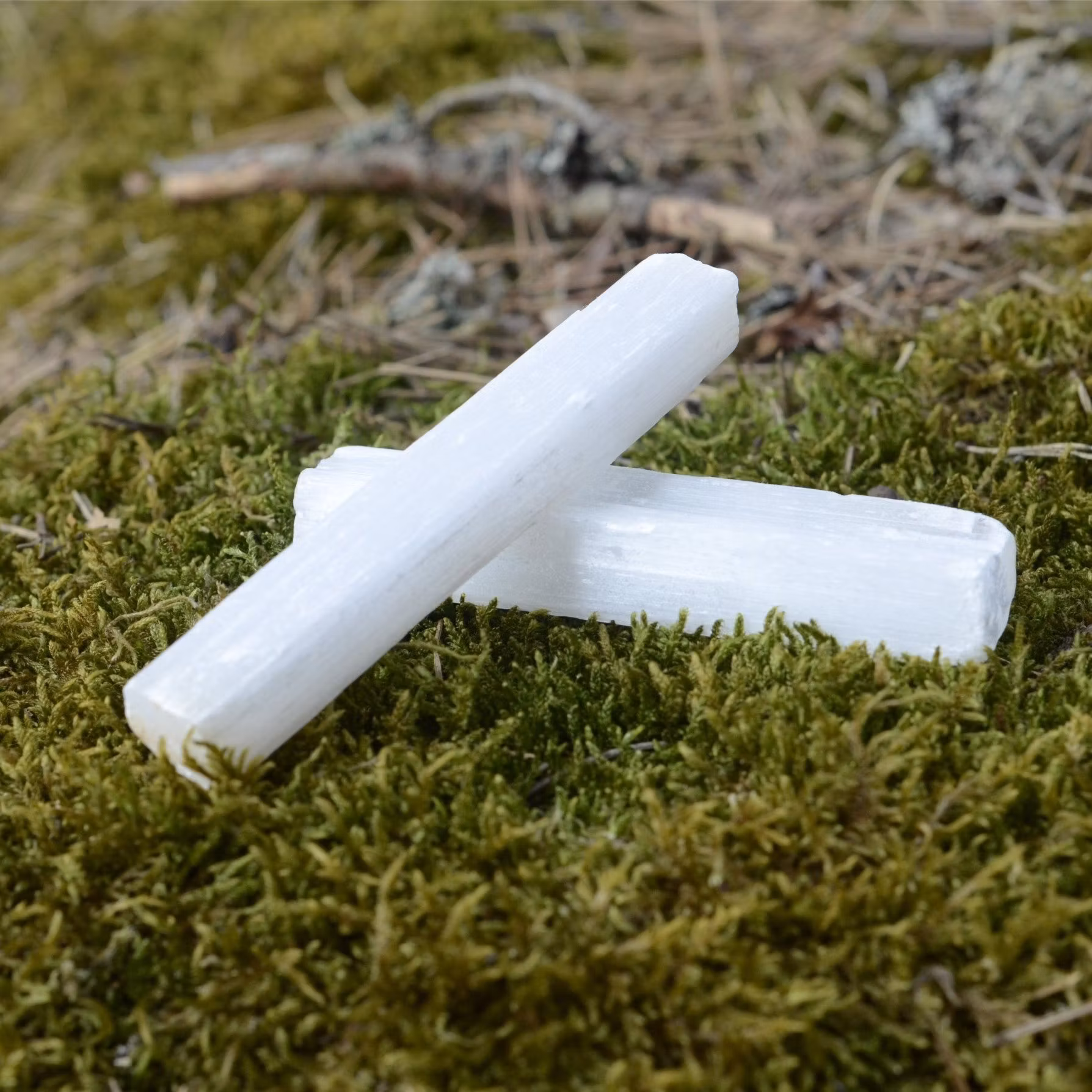 Vacker rå stav i Vit Selenit, noggrant utvalda för sin vackra glans och höga kvalitet.