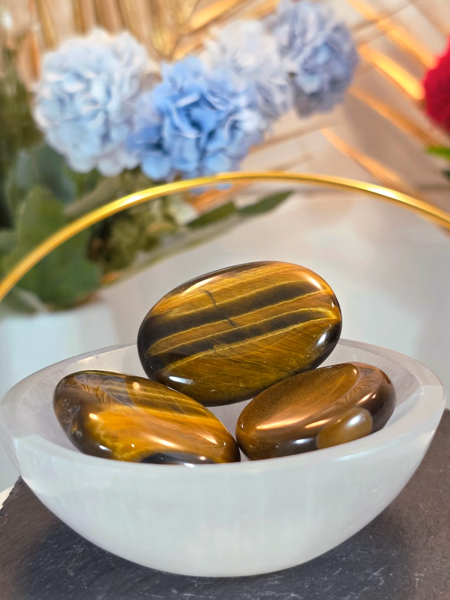 Tigeröga förknippas ofta med rot- och solarplexuschakrat och sägs kunna hjälpa till att balansera känslor samtidigt som den uppmuntrar handlingskraft och tydlighet i livets riktning.