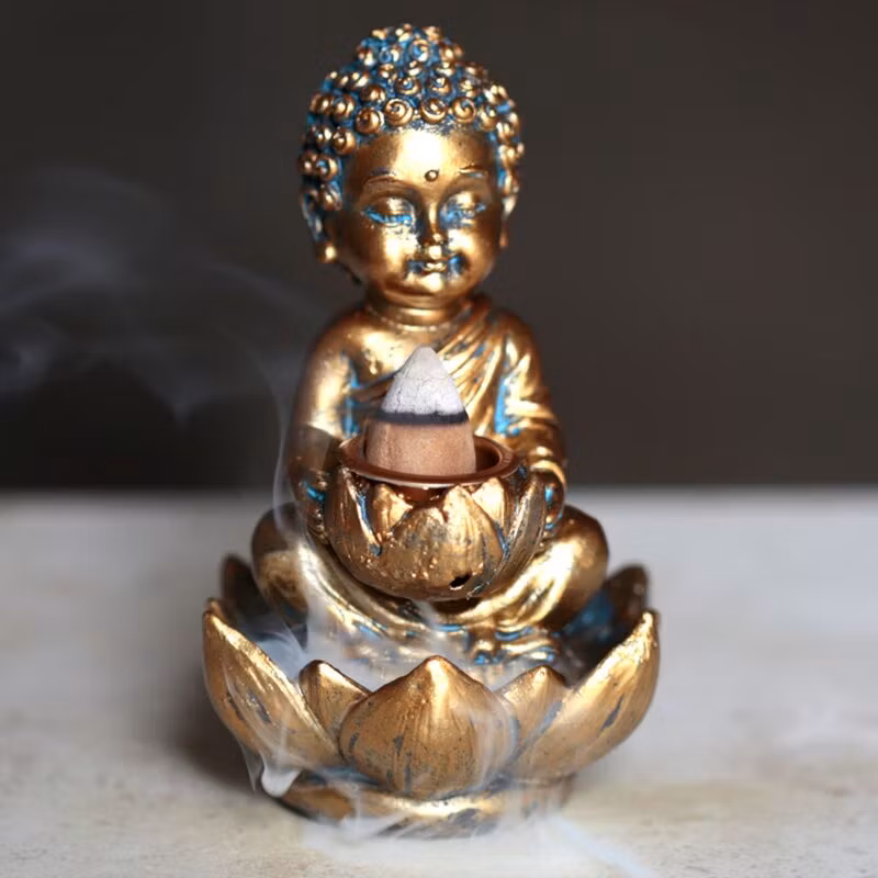 Liten Buddha och Lotus Backflow Rökelsebrännare