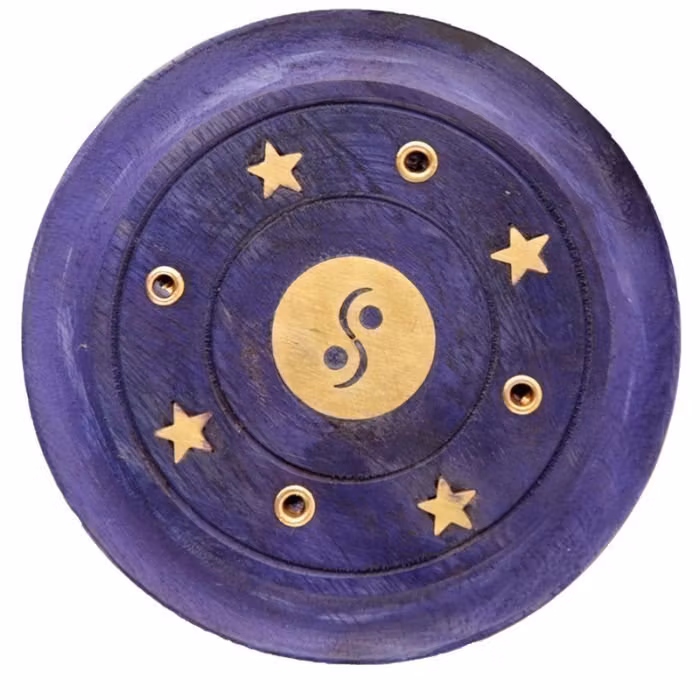 Mangoträ Yin Yang Rund Lila Asksamlare Rökelsehållare