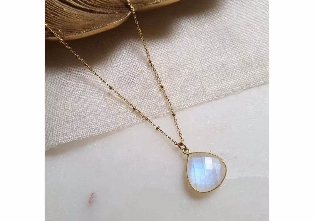 Det här halsbandet med månsten är ett unikt halsband som kommer att påminna dig om att lita på dig själv, hävda dig själv och följa dina drömmar. Bär det för att känna dig trygg och skyddad på alla dina inre resor.