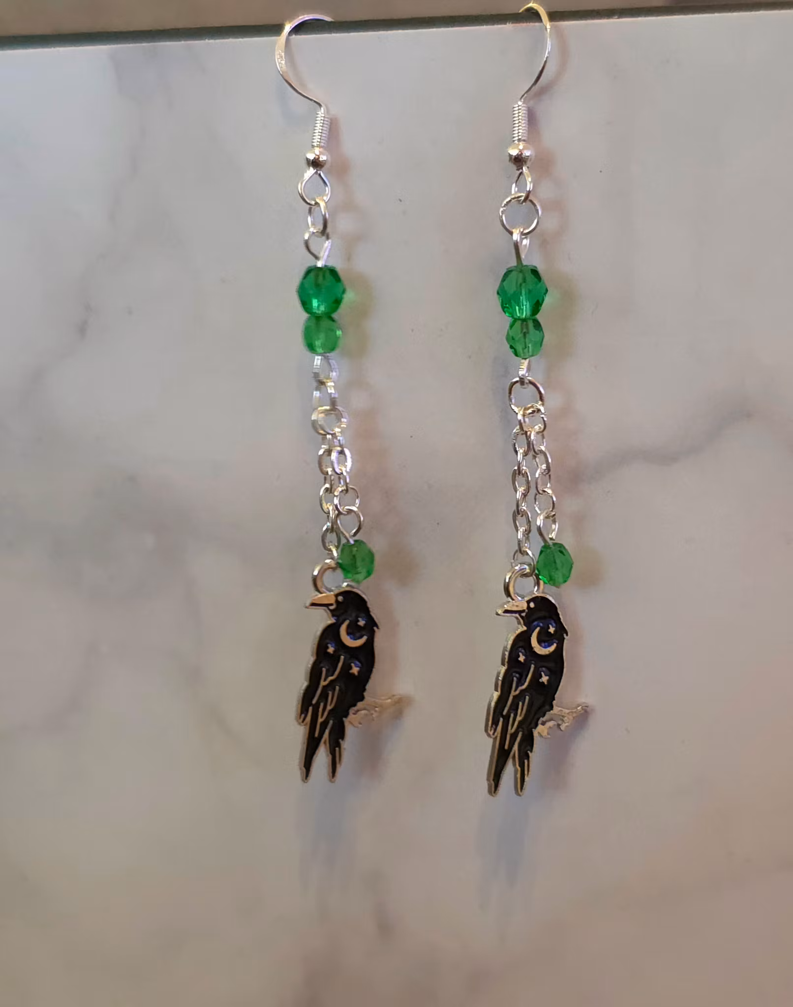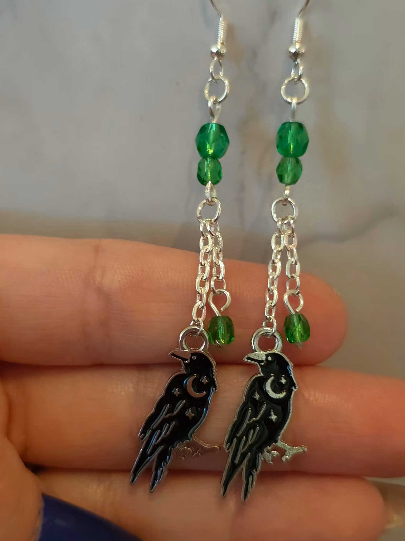 Silverfärgade med korp med måne på, och gröna pärlor