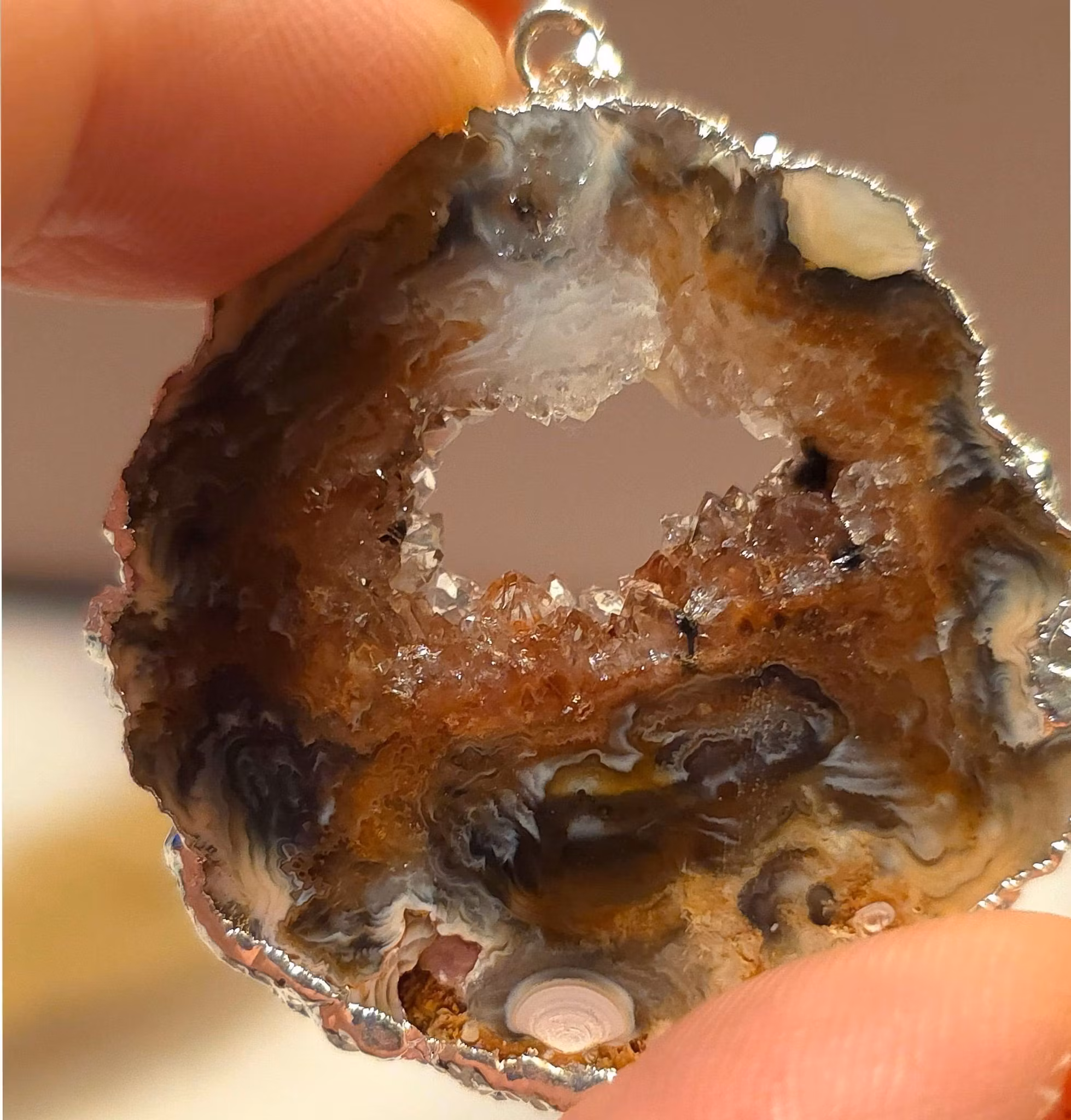 Hänge i agat med druzys, silverplätering.