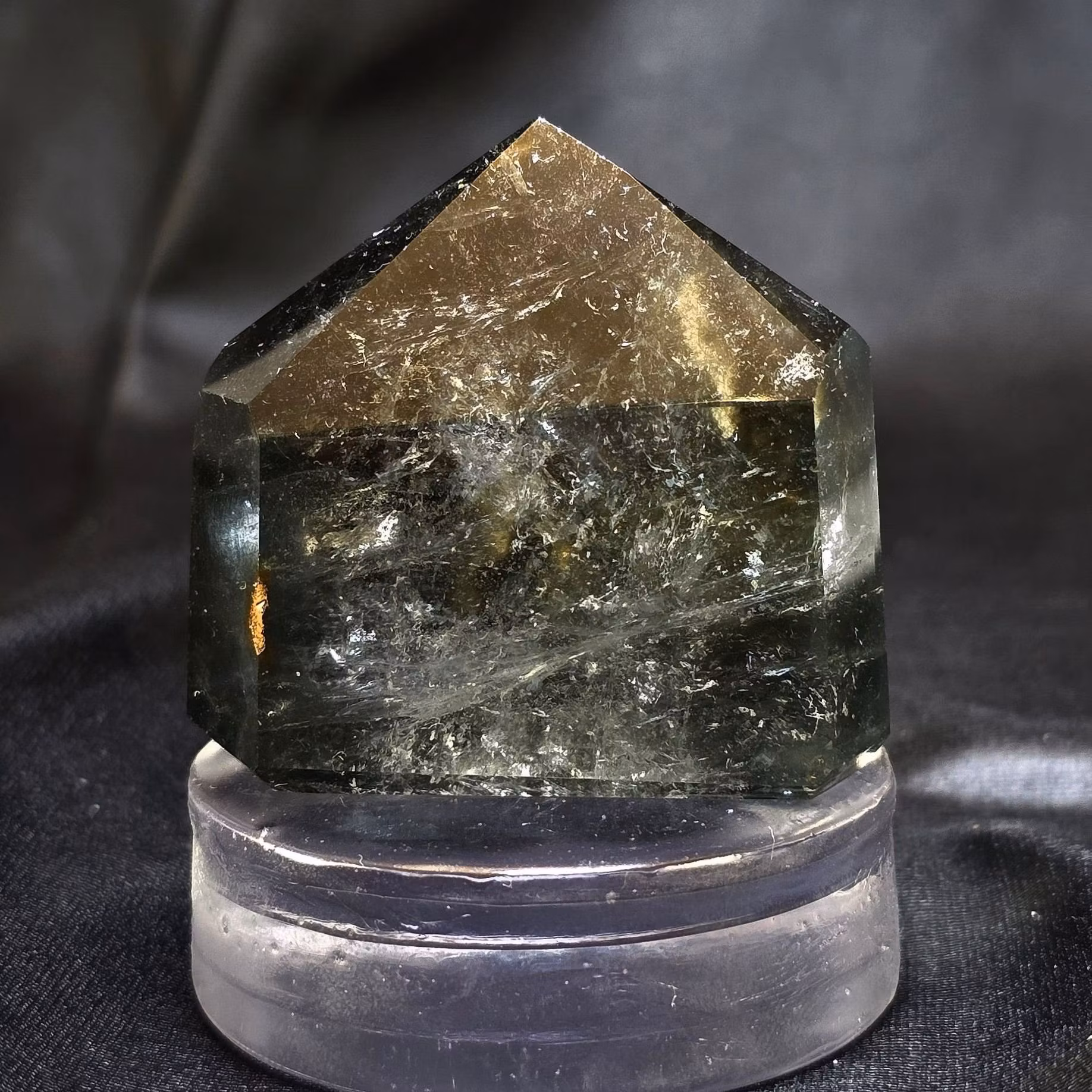 Lodolit med gröna inklusioner som ser ut som flytande mossa.