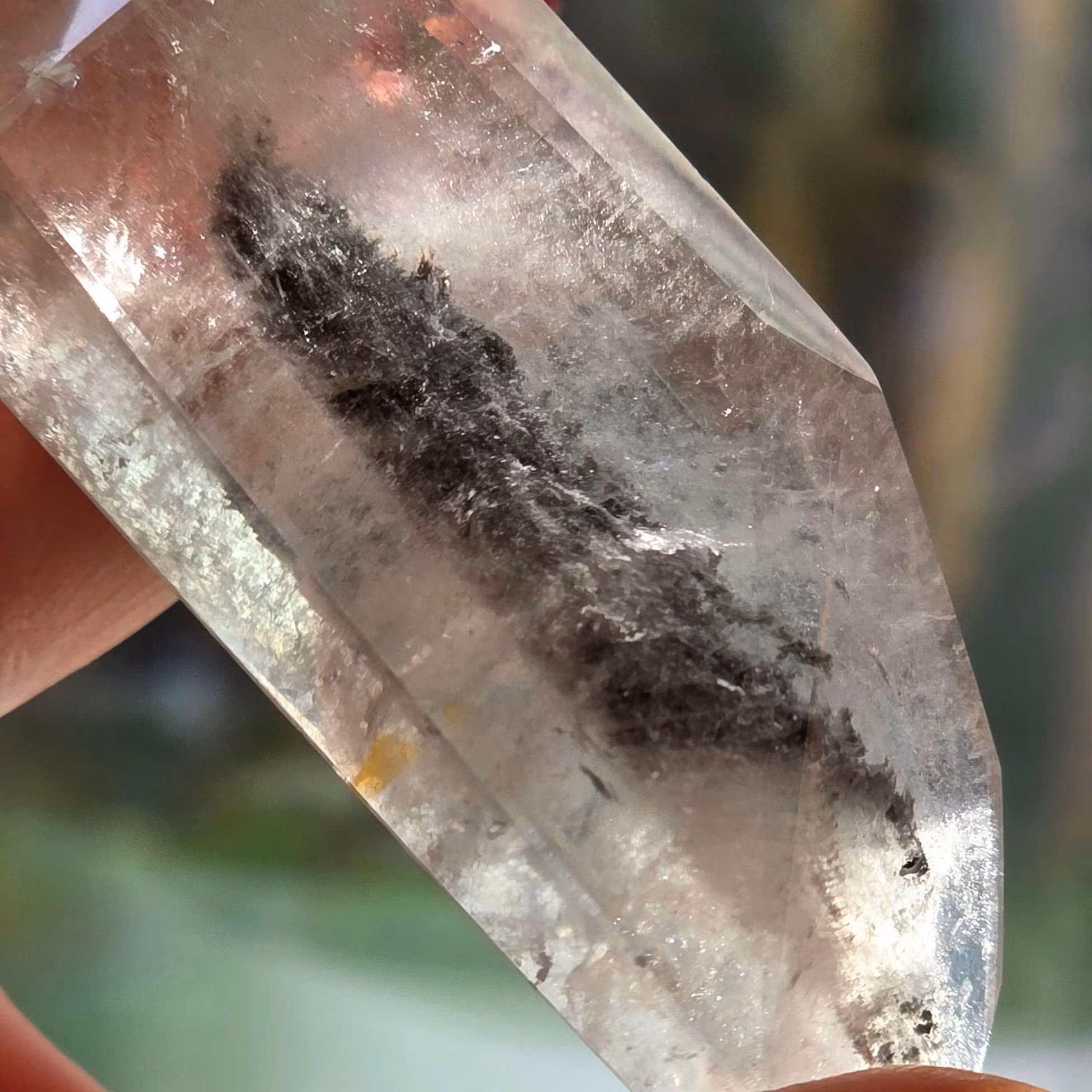 Lodolit med svart turmalin som inklusion, även regnbåge.