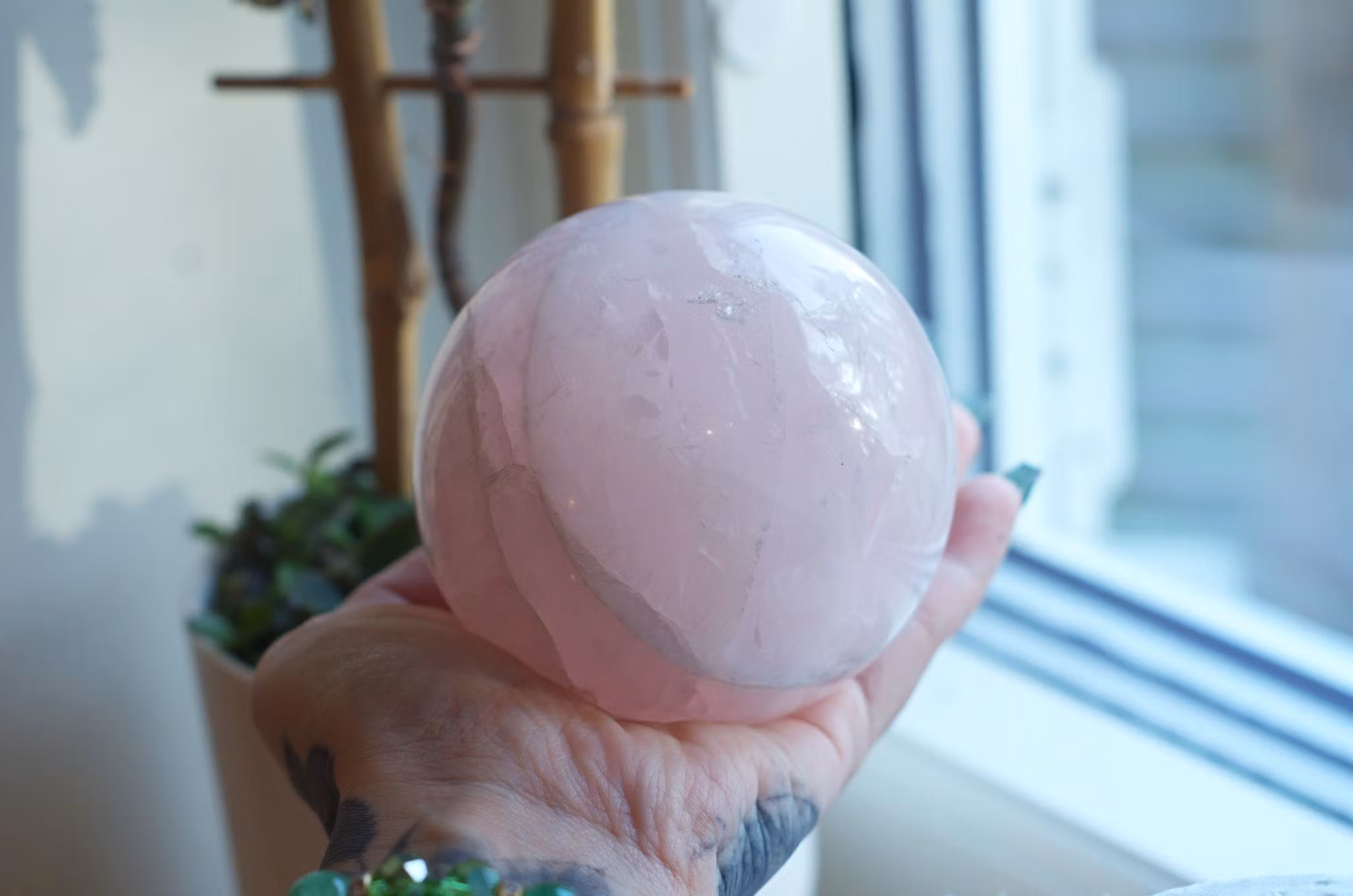 Stort rosenkvartsklot i hög kvalitét.
